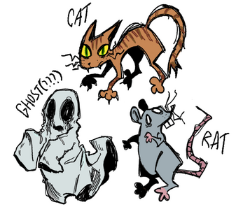 you will and your companions/enemys will play as recently deceased spectors trying to find clues that will reveal your past and what brought you to your demise. this is done by possessing the nearest living things which in a place as haunted as this is 3-5 rats and one cat. possession doesn't last forever and if you don't use your undead time wisely you will probably lose to your opponents. each possession has different abilitys such as rats being the most common and standard, only being able to search a few rooms, cats being able to knock rats out of possession but not being able to travel the rooms as easily due to not being small enough to fit through the cracks in the walls, and lastly the ghost who didn't get a possession who can float through walls but can't pickup clues.